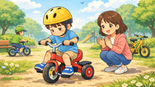 三輪車は3歳で遅い?と不安なあなたへ。こげない理由を体格・コツ・環境で切り分け、足けり→こぎ出し補助→斜め前キックの練習法を紹介。サイズ/身長の選び方、ヘルメットと靴の安全対策、ストライダー・補助輪比較、卒業目安も。三輪車は3歳で遅いと思っても安心。