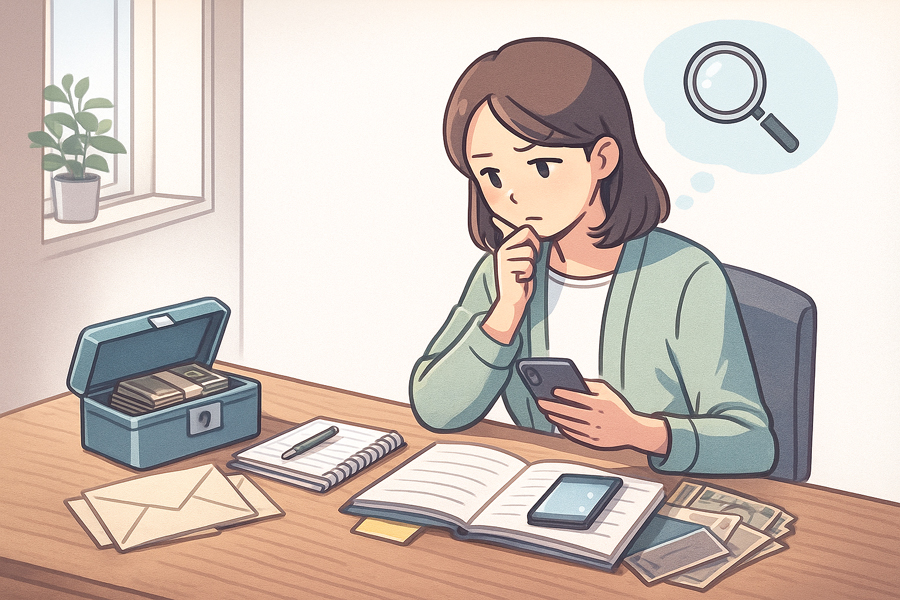 ここからは、「お金 取られた 証拠ない 家族」という状況の中で、どうやって事実確認を進めていくかを整理します。 いきなり犯人探しをするのではなく、自分でできるセルフチェックや、記録の残し方、家族への伝え方を見ていきましょう。