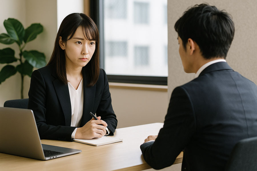 入室時の挨拶が短い、オンラインでの無表情、相づち不足、被せ気味の質問、沈黙に耐えられず急かす、終盤の質問タイムを十分に取らない、などです。