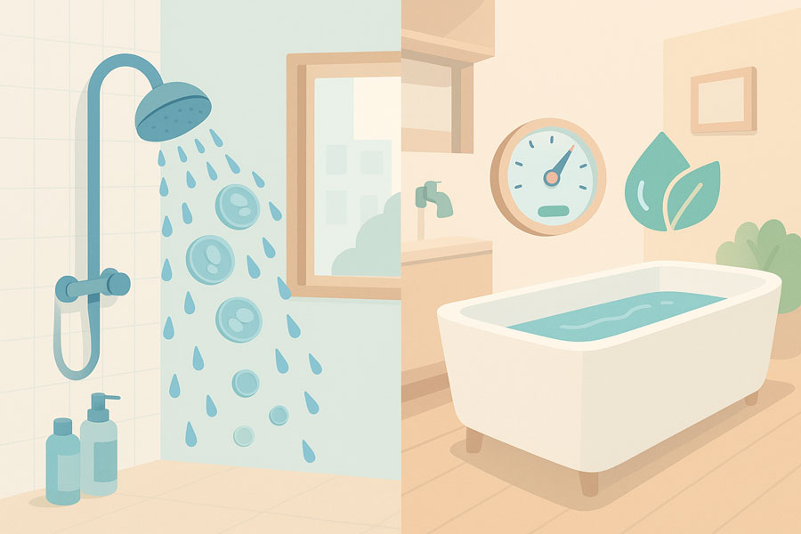 平日は8〜12分のショートシャワー、週末は湯船10〜15分のハイブリッド運用。