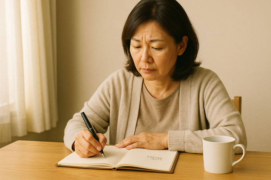 50代のうちにエンディングノートを書いておくと、自分の状況が整理され、「どこから手をつけるべきか」が見えやすくなります。一度で完璧を目指さず、思いついたところから書き足すくらいの気持ちで始めると続けやすくなります。